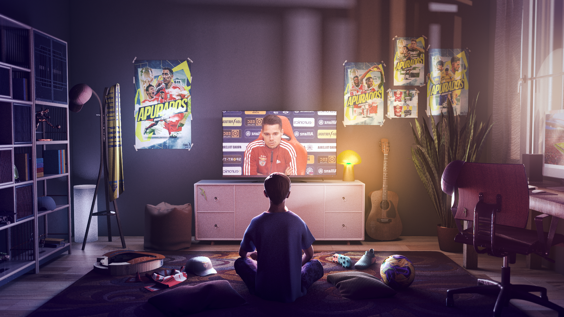 A fully CGI-produced movie was envisioned to serve as the introductory segment for the live broadcast on Sport TV. The central theme of this film was inspired by that year's campaign slogan for the competition, "The Ball Never Stops." This theme highlighted the unique aspect of the tournament being the only one that continued uninterrupted during the Qatar World Cup period.